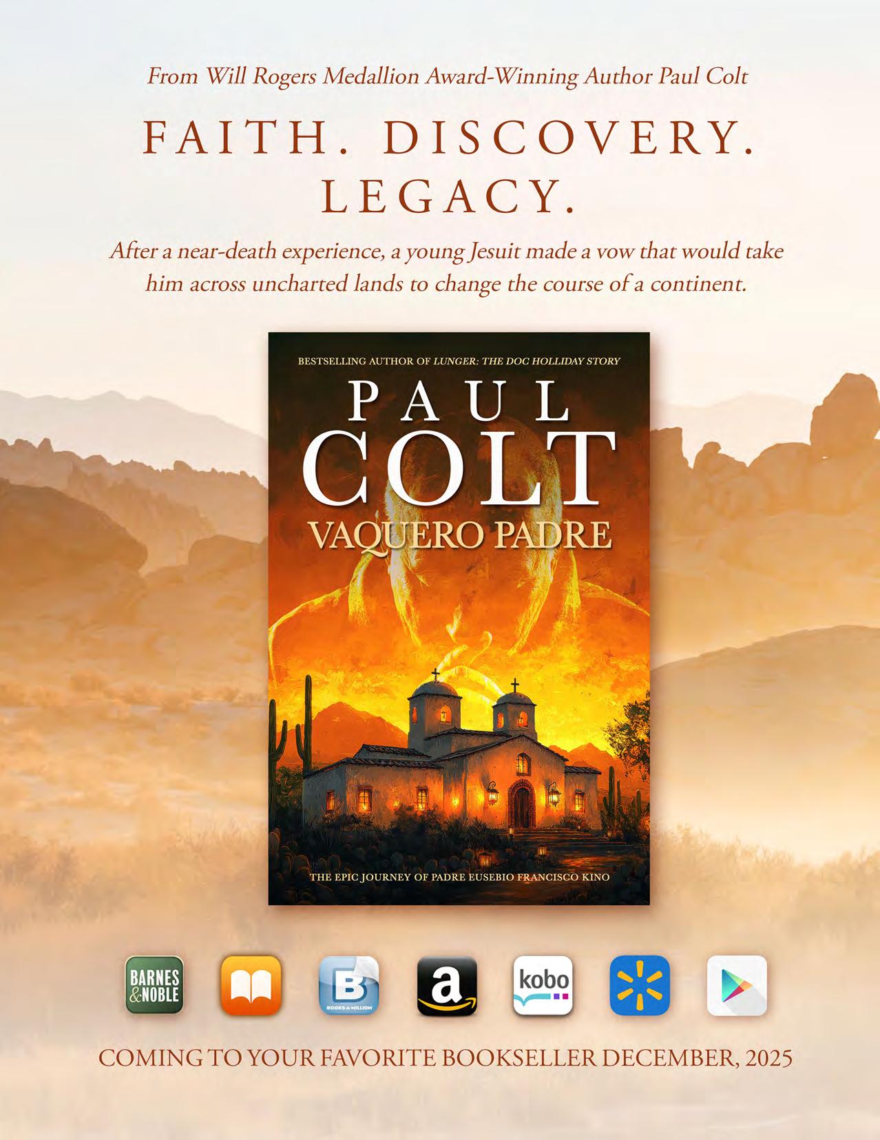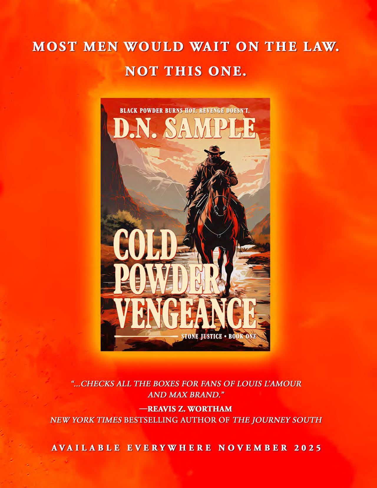 We’re also proud to celebrate the winners of the 5th Annual Mustang Award for Western Flash Fiction. L ast year, Laura Conner Kester claimed the trophy with her story “A Train to Catch.” This year, Brandon Barrows takes home the Mustang with his taut and memorable “A Damn Fine Day.” Our First Runner-Up is Michael R. Ritt with “The Undertaker,” and Lana Dunnaway rounds out the top three with “The Holdup.” Congratulations to all our winners, and many thanks to every entrant and judge who helped keep the spirit of western storytelling alive.