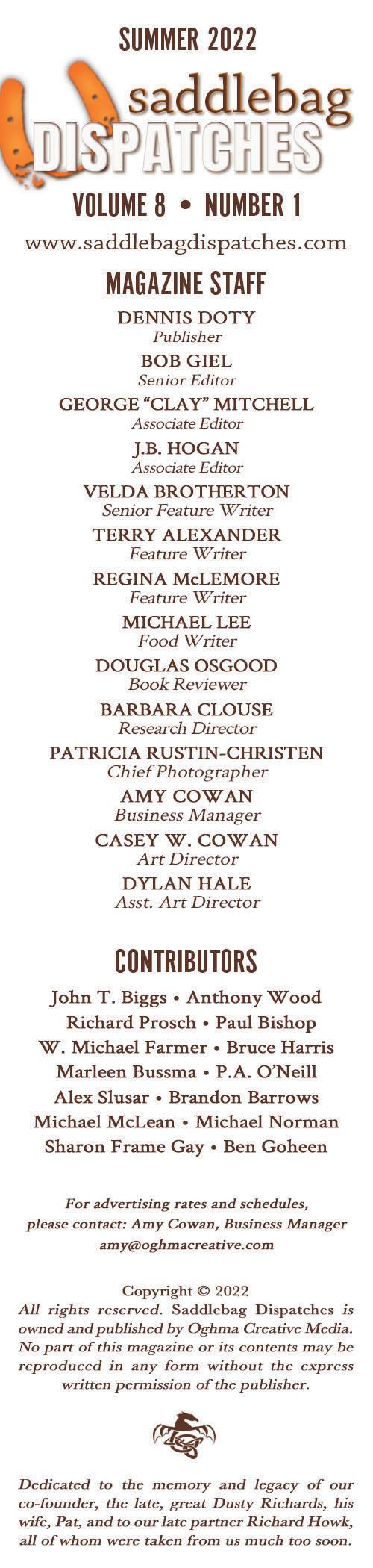 No submissions for our Winter 2022 Issue will be accepted. It will be a special edition dedicated entirely to the memory of our late co-founder, Dusty Richards.