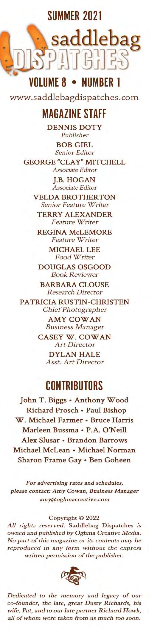 No submissions for our Winter 2022 Issue will be accepted. It will be a special edition dedicated entirely to the memory of our late co-founder, Dusty Richards.
