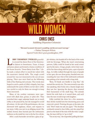She irts with cowhands, freighters, gamblers, hunters, men who strain against the limits of the law and give this town its fame.