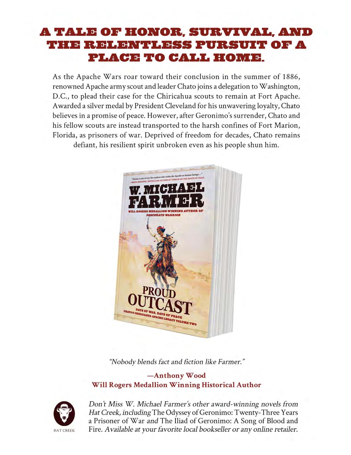 Congratulations are in order for two authors from our Winter 2023 Cochise County issue who have been named fnalists for the Will Rogers Medallion Awards in October—W. Michael Farmer for “Finding Farmer” and Michael Norman for “A Death of Crows.”