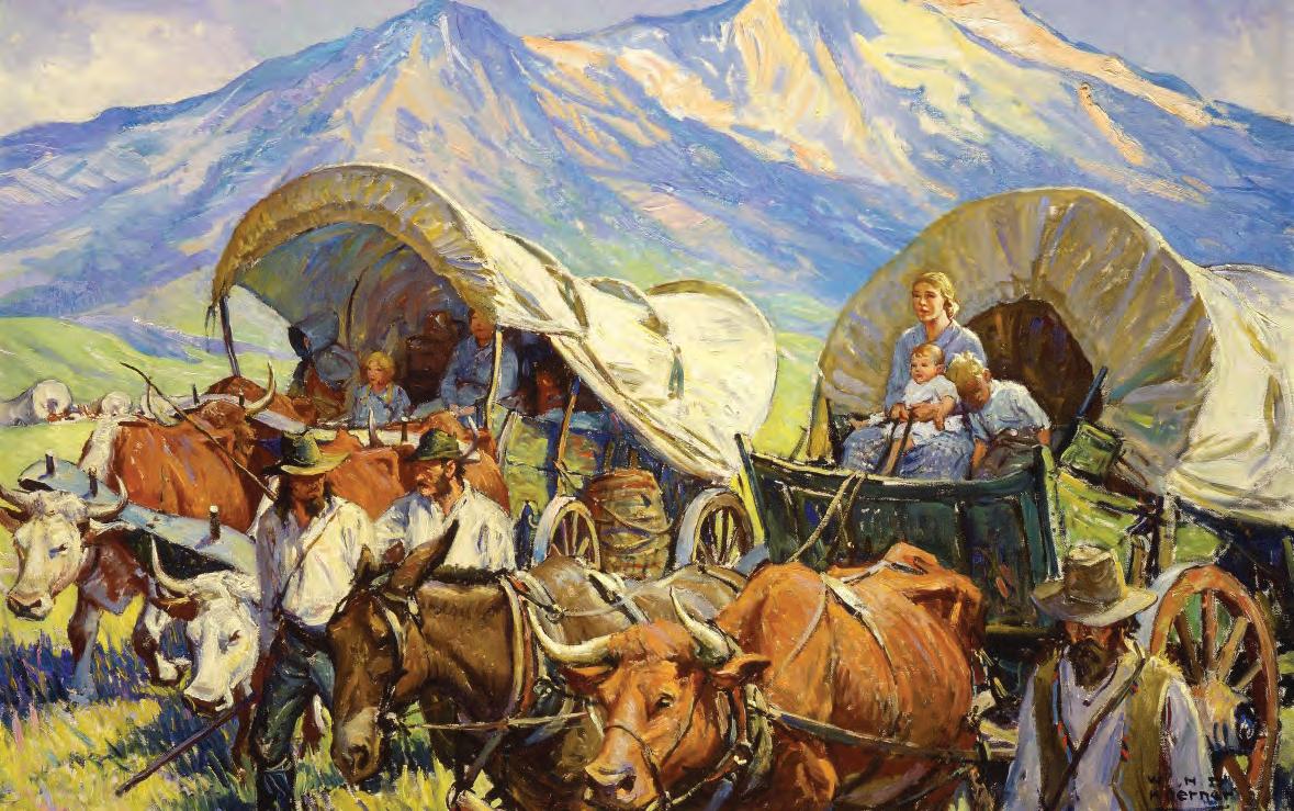 Within the article were listed requirements for participants: a good rife, plenty of ammunition, and rations for the journey, consisting of 100 pounds of bacon and 180 pounds of four, to be transported in wagons drawn by horses, mules, or oxen. The company planned to leave the frst of April. Luckily, quite a bit is known about this party’s “tramp” to California, largely in part to the preservation of journals that various party members kept of their