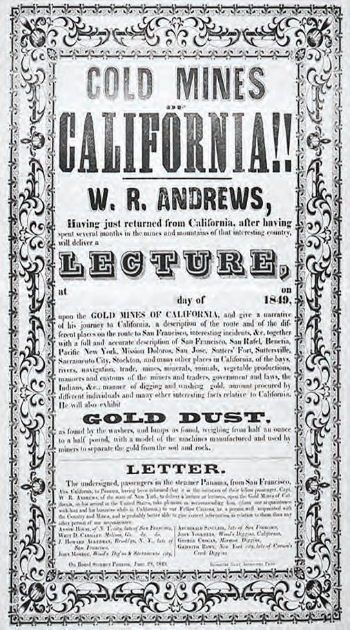 This issue ofers even more treasures. Regina McLemore shares the incredible journey of a Cherokee wagon train to the goldfelds, while Sherry Monahan’s Lively Libations column adds a bright and favorful touch. Terry Alexander delves into Hollywood’s interpretation of the Gold Rush era, examining how it has been portrayed on the silver screen.