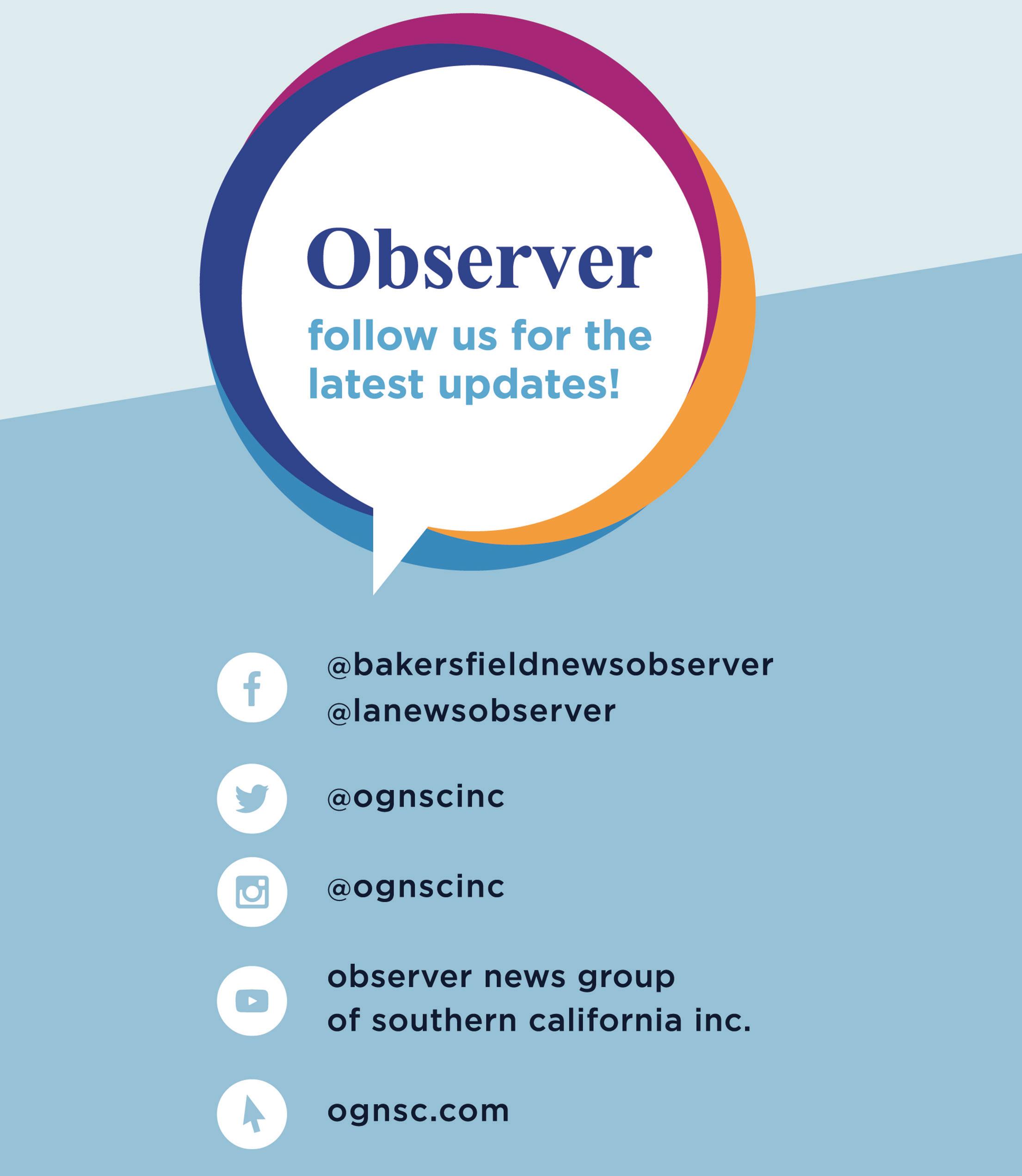 The Observer Group Newspapers of Southern California, Inc.: Bakersfield News Observer, Los Angeles News Observer, The Valley’s News Observer Los Angeles News Observer 6060 Center Drive Floor 10, Los Angeles, CA 90045 Mailing Address: PO Box 2341, Bakersfield, Ca. 93303 Phone (661) 324-9466 FAX (661) 324-9472