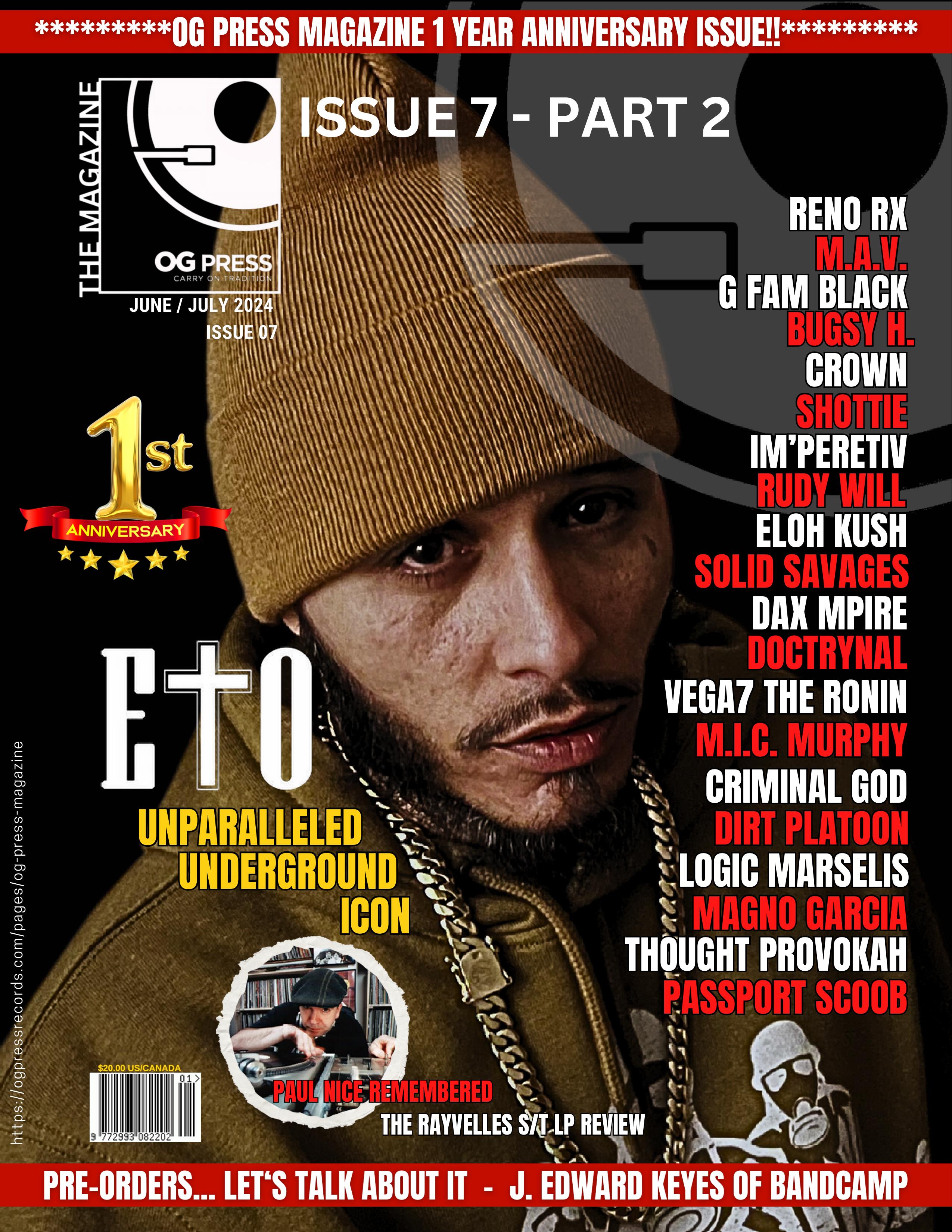 COVER STORY- ETO | PAUL NICE REMEMBERED | M.A.V. | G FAM BLACK | RENO RX | VEGA7 THE RONIN | CROWN | SHOTTIE | IM'PERETIV | RUDY WILL | ELOH KUSH | SOLID SAVAGES | DAX MPIRE | DOCTRYNAL | BUGSY H. | M.I.C. MURPHY | CRIMINAL GOD | DIRT PLATOON | LOGIC MARSELIS | MAGNO GARCIA | THOUGHT PROVOKAH | PASSPORT SCOOB | J. EDWARD KEYES OF BANDCAMP | AND MUCH MORE!!!