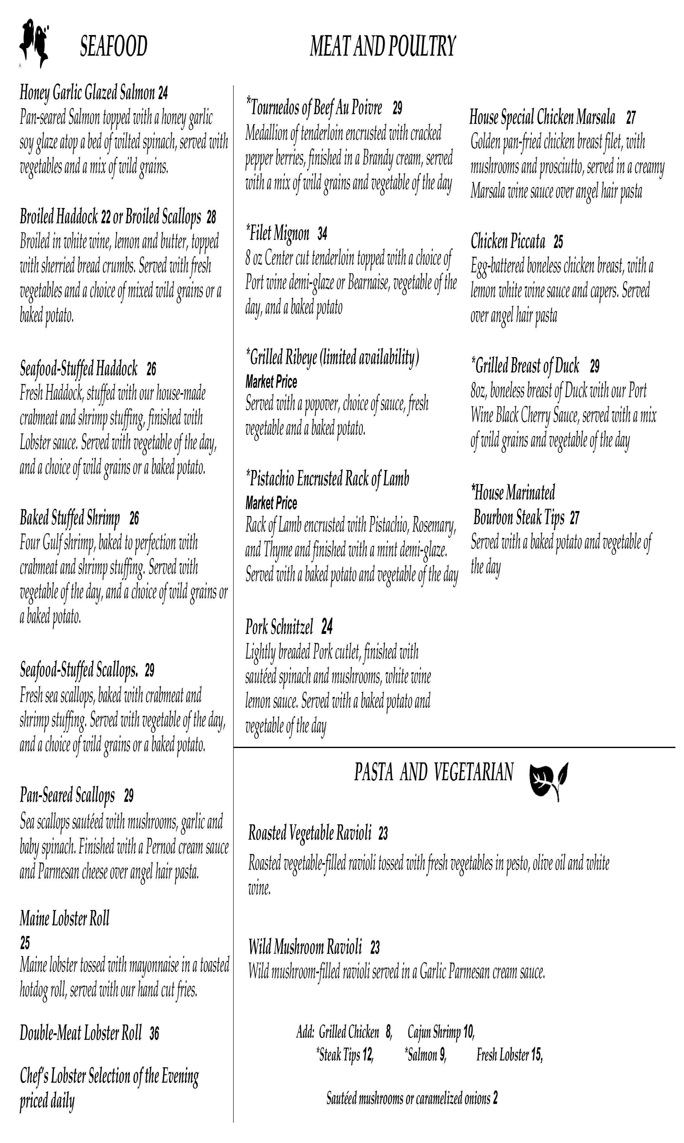 Prices and menus are subject to change without notice. Please contact each establishment for the most up to date information.
