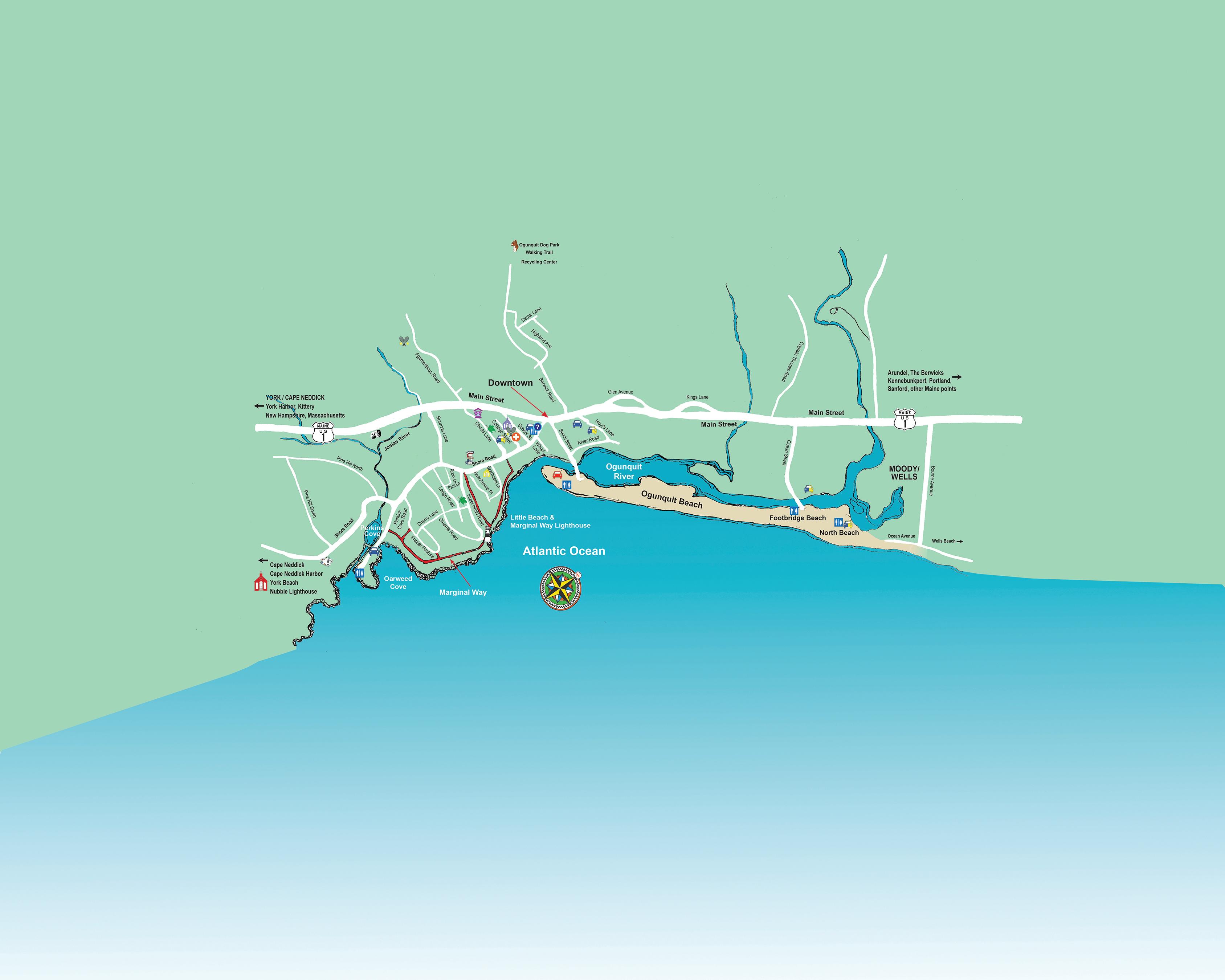 We have three beach parking lots, all accessing the same wonderful long beach! Main Beach, Footbridge Beach and North Beach all charge a daily flat fee and by the hour. There are several additional lots around town that charge by the hour. There is free short-term parking at Upper Lot and on the street. Visit Ogunquit.org/parking for a map and parking rates.