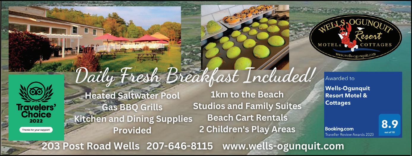 Oceanfront lodging directly on sandy Wells Beach. Microwaves, refrigerators, coffee maker, outdoor seasonal heated pool, private balconies, Wi-Fi, nonsmoking, newly renovated.