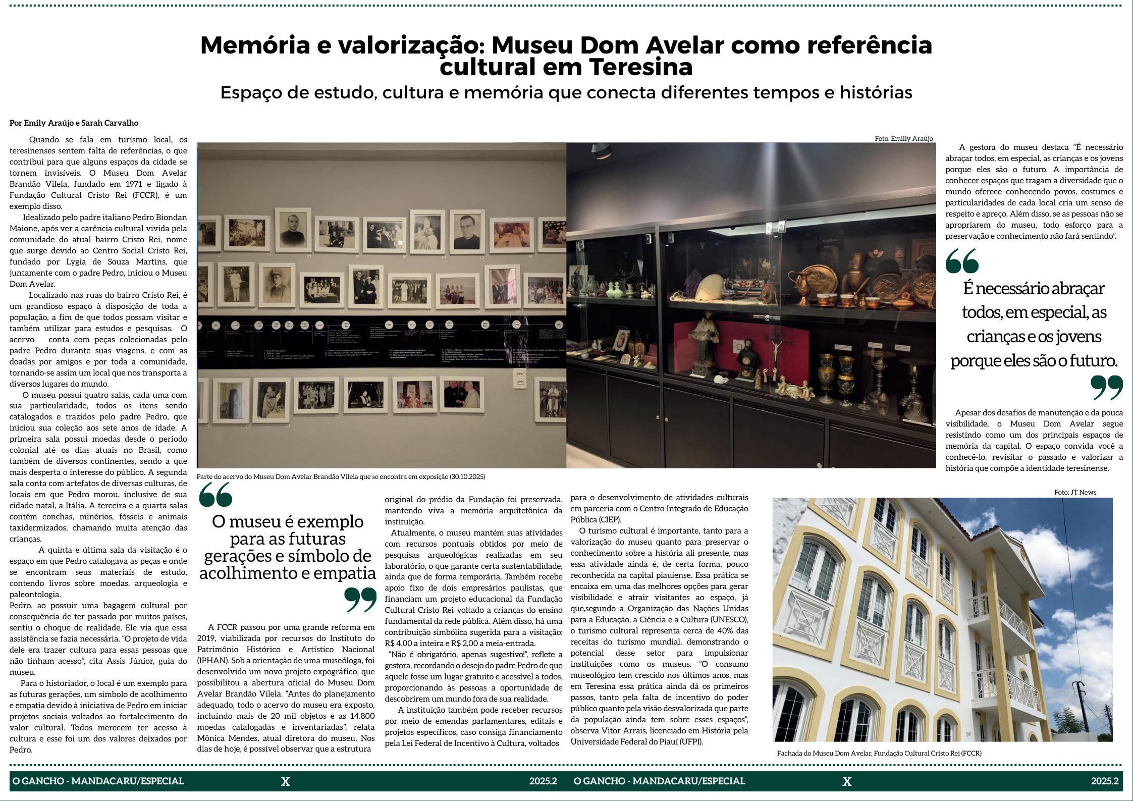 Esta é a edição de encerramento do períodoletivoeselaacontribuiçãodecada estudante nesse processo de ensinoaprendizagem. Acreditamos que O Gancho seguecomoumespaçoondeotrabalhoflua apartirdecadaideia,contribuição,dúvida e insistência. Que siga vivo o desejo de compreender as vidas, ler o mundo e contar histórias. O jornalismo é um importante instrumento para concretizaçãodessedesejo.