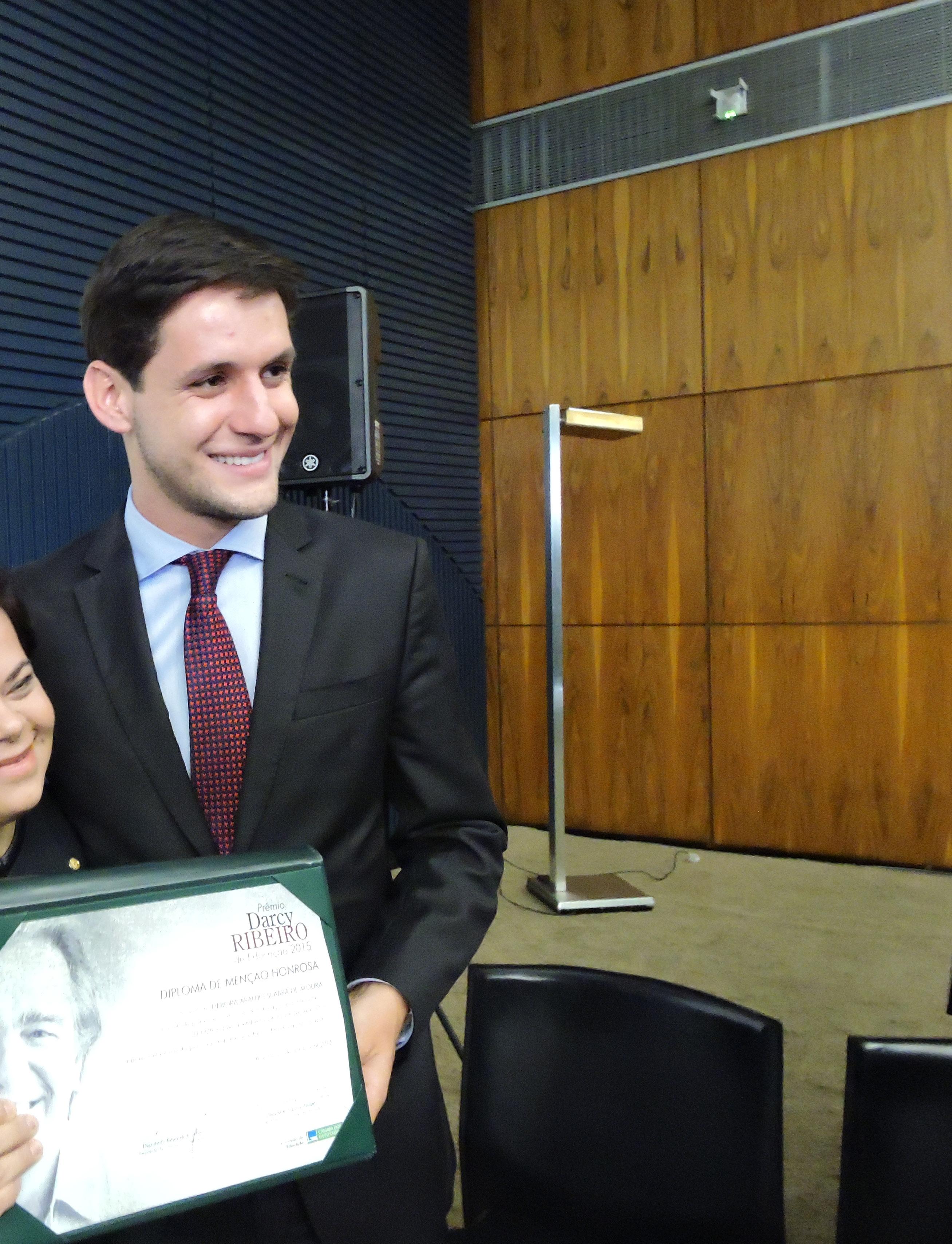 A potiguar Débora Seabra, primeira professora com síndrome de Down do Brasil, foi homenageada com o Prêmio Darcy Ribeiro de Educação 2015, em Brasília. O prêmio é promovido pela Comissão de Educação da Câmara dos Deputados, que elege pessoas consideradas exemplos no desenvolvimento de ações educativas no nosso país. O nome de Débora foi indicado a concorrer ao prêmio por Rafael Motta.