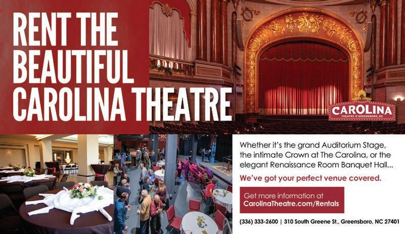 23 SKIDOO & THE SECRET AGENCY. 3:30 p.m. Bring the whole family to an interactive performance by an electric ensemble and Grammywinning hip hop artist. Tickets: $18+. Carolina Theatre, 310 S. Greene St., Greensboro. Info: carolinatheatre.com/ events.