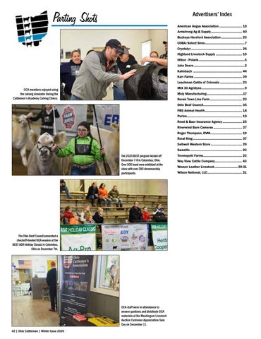 Moly Manufacturing............................................17 Novak Town Line Farm....................................... 23 Ohio Beef Council............................................... 35 PBS Animal Health............................................. 18 Purina.................................................................. 19 Reed & Baur Insurance Agency........................ 25 Riverwind Barn Cameras................................... 27 Roger Thompson, DVM...................................... 19 Rural King........................................................... 37 Saltwell Western Store...................................... 29 Sweetlix.............................................................. 23 The 2020 BEST program kicked off December 7-8 in Columbus, Ohio. Over 500 head were exhibited at the show with over 280 showmanship participants.