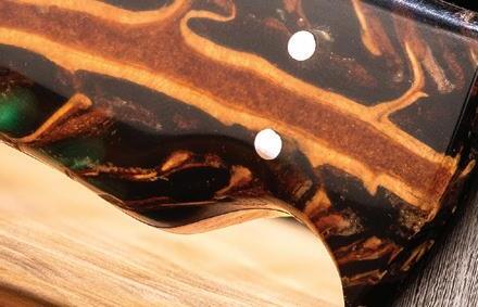 Each pinecone — and therefore, each knife — has its own unique characteristics. And the back of the handle features hand tooling, a further demonstration of each piece’s individual nature.