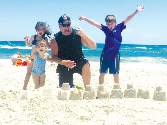 3. Kendall and Tessa Hall and Steve and Ben Kopp, building sandcastles on the beach at the Outer Banks in North Carolina.