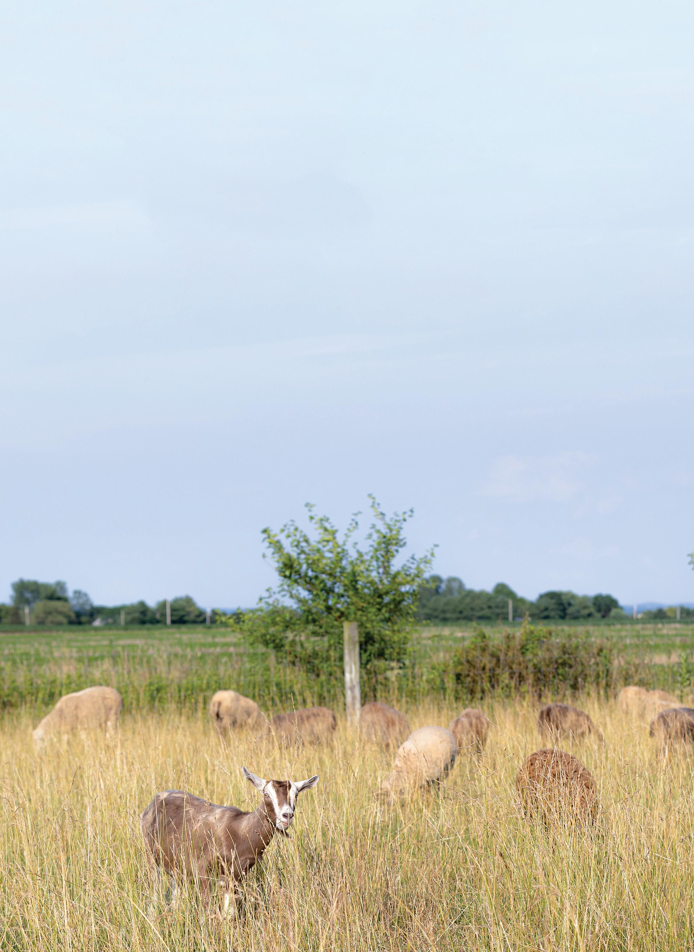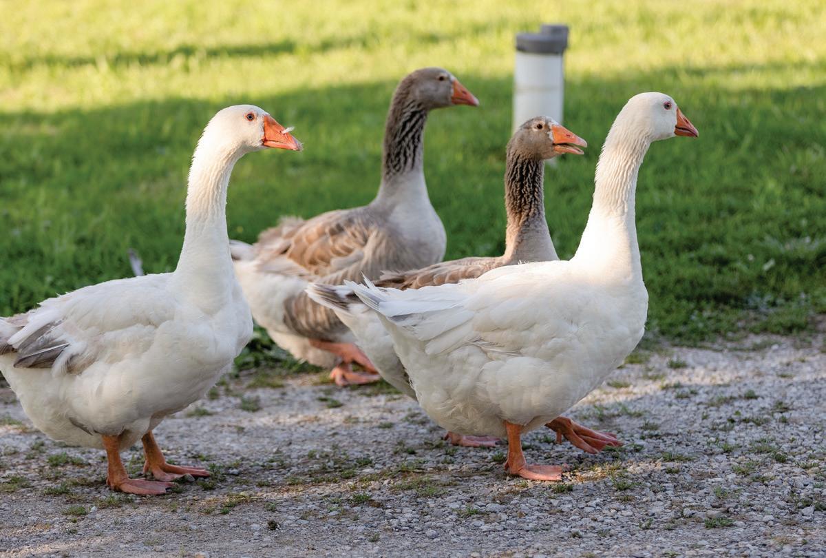 LaRue’s third heritage livestock breed is her geese — four Pilgrims, a breed that the Livestock Conservancy classifies as threatened, with fewer than 1 ,000 annual registrations in the U.S. “Their primary purpose is serving as a predator deterrent for the chickens,” LaRue says. “They’ll go after a raccoon or a possum.”