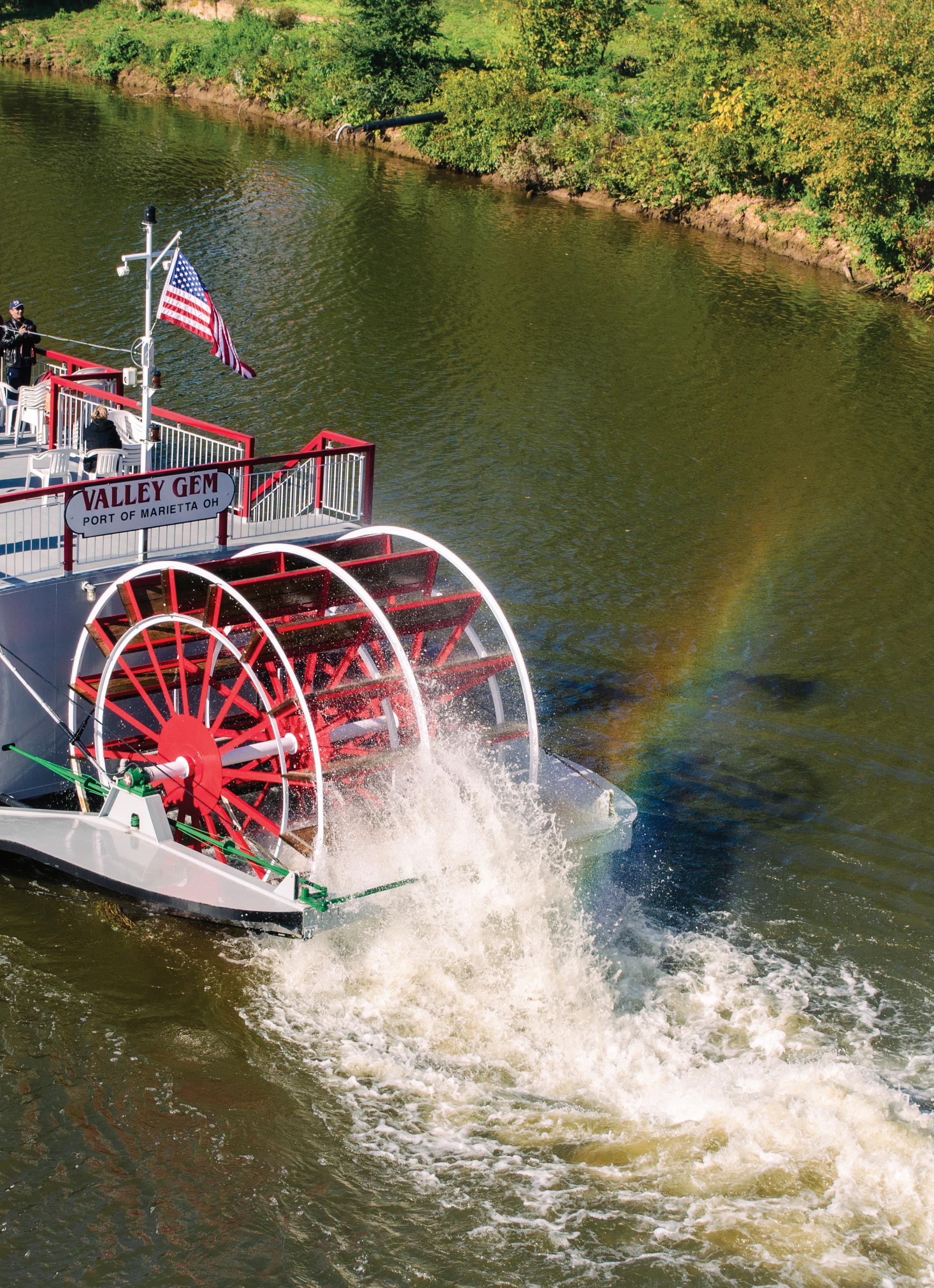 This page: The Valley Gem sternwheeler takes visitors on a trip back in time from its dock in Marietta. Our outdoors editor took a ride for his story that appears on page 12 (photo courtesy of Amy Strahler/Amy Strahler Photography).