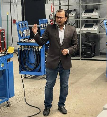 Syed Ahmed, assistant professor of instruction in engineering technology at OHIO Lancaster, gives a tour of the Fairfield County Workforce Center.