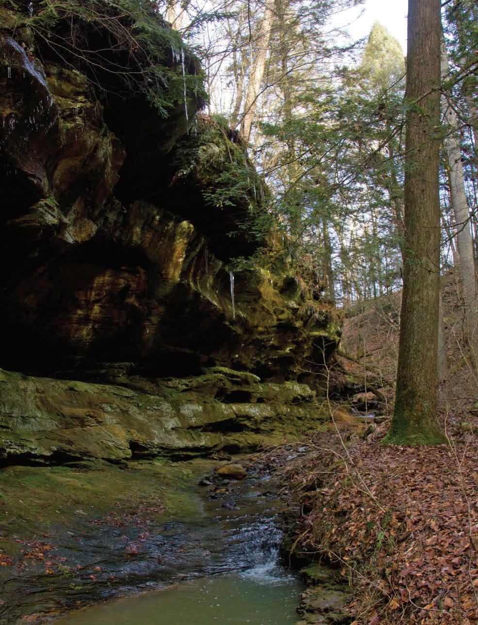 Near the Jackson County village of Leo in southeast Ohio is Leo Petroglyphs & Nature Preserve. A half-mile trail leads along sandstone cliffs and through a gorge with several small waterfalls.