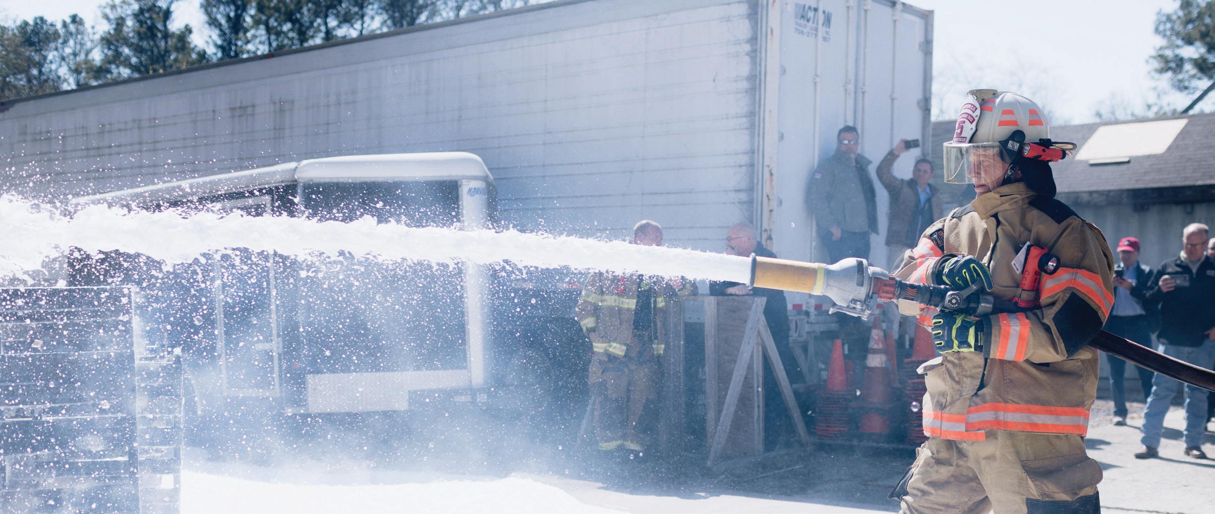 In April, OSC and the Harrison Township Fire Department in Ashville, Ohio, hosted a demonstration of a new, soy-based firefighting foam that uses about 13 pounds of soymeal per five gallon bucket. Originally funded by the United Soybean Board, and developed by Georgia-based Cross Plains Solutions, SoyFoam™ is made from soy flour making it a biodegradable option for firefighters and creating a new domestic market for soybean farmers. Checkoff dollars helped OSC launch a cost-share program for Ohio fire departments to purchase SoyFoam with reimbursement up to $1,000.