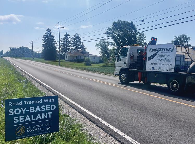 OSC collaborated with Sidney, Ohio-based company BioBased Spray Systems to demonstrate a new soy-based asphalt sealant that can extend road life by 40%. In summer 2025, applications of BIORESTOR® were made on two, one-mile stretches of highway in Northwest Ohio. A key component of the formula is soybean oil that helps protect and preserve state roadways.