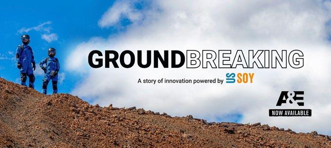 In June, a new documentary funded by the soybean checkoff showcasing the unique innovative power of the soybean, GroundBreaking: A Story of Innovation, premiered on A&E. With an American origin story that dates back nearly 150 years, the soybean plant has evolved into a resource used by farmers, chemists, historians, chefs and astrobiologists. This story features experts diving into how soy unlocks sustainable, biobased alternatives, best-inclass performance, optimized nutrition for animals and humans alike and a viable future to empower space exploration.