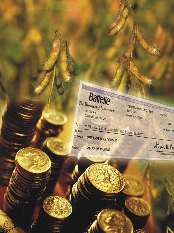 For over 10 years, the Ohio Soybean Council (OSC) and the soybean checkoff have invested in research and development projects at Battelle to find new uses for soybeans. This decade of investments recently paid off when OSC and the soybean checkoff received their first-ever royalty check in the amount of $25,000 for the development of soy-based toner. Read more on page 12.