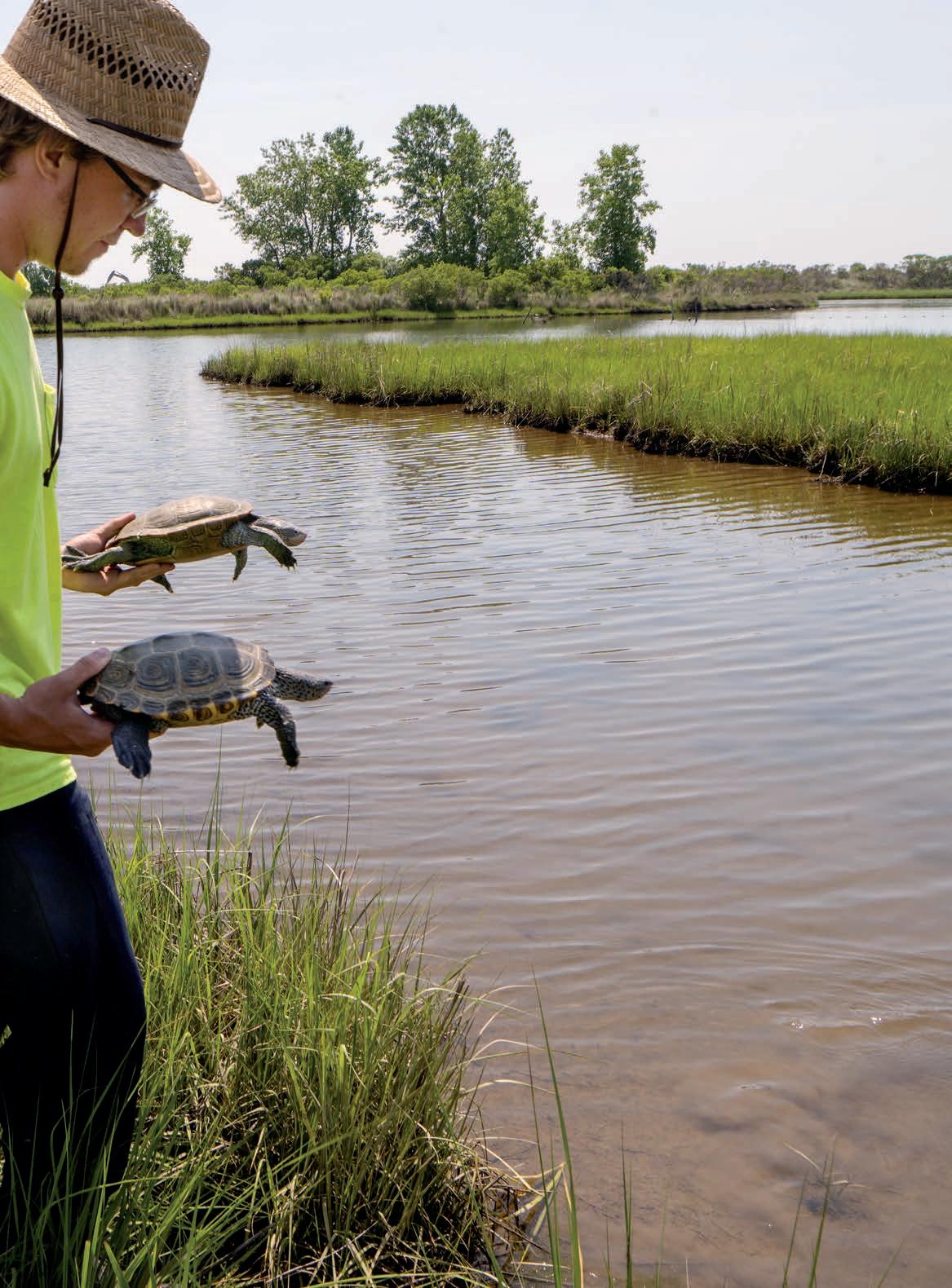 Professor of Biological Sciences Dr. Willem Roosenburg has been studying and spearheading conservation efforts for diamondback terrapins for decades. Each summer, he takes a research team of OHIO students to a Chesapeake Bay island—a living laboratory where they learn about and engage in ecosystem monitoring and restoration.