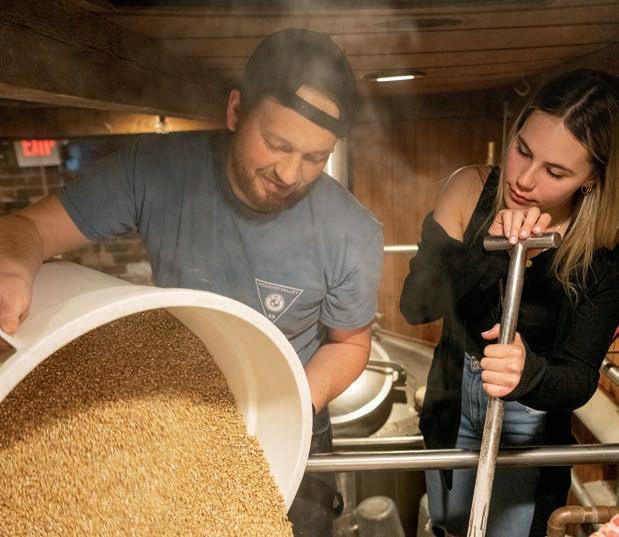 Local brewer Jackie O’s decided to put “Sun Tea,” an English IPA Francesca Carney, BSCHE ’22, crafted for the course, into production. [OPPOSITE] In Angela Sprunger’s ART 4960 capstone course, students met with a committee of Genesis HealthCare System