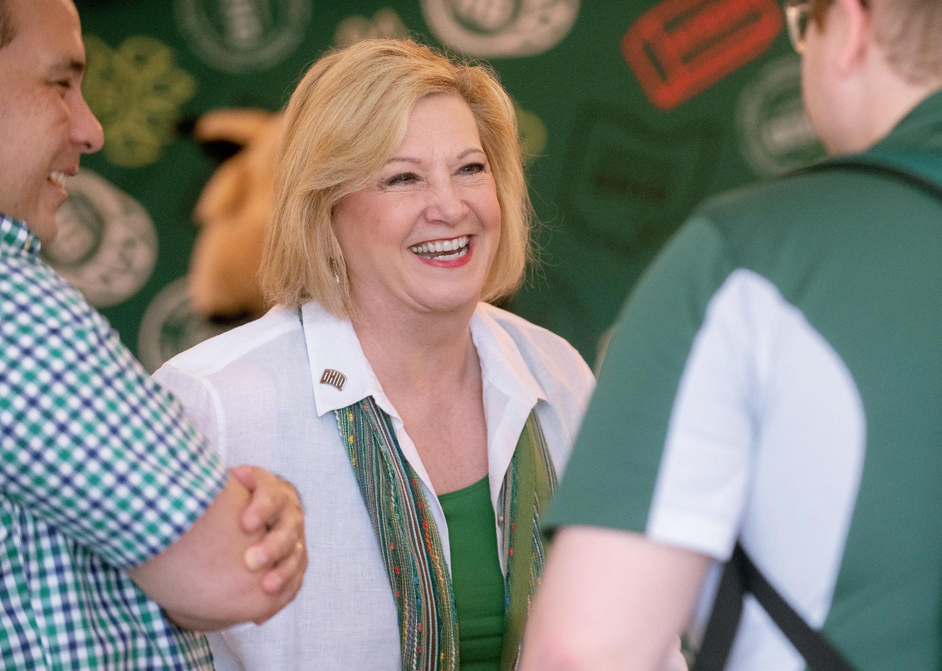 Her visits ranged from touring high-tech labs, such as the Institute for Sustainable Research and the Environment within the Russ College of Engineering and Technology and the Plant Biology Genomic Facility in the College of Arts and Sciences, to attending a Southern Ohio Copperheads baseball game to see student organizers from the College of Business in action, to visiting the Heritage College of Osteopathic Medicine’s Primary Care Mobile Clinic. She even caught up with Gov. Mike DeWine for a joint visit to the Ohio State Fair.