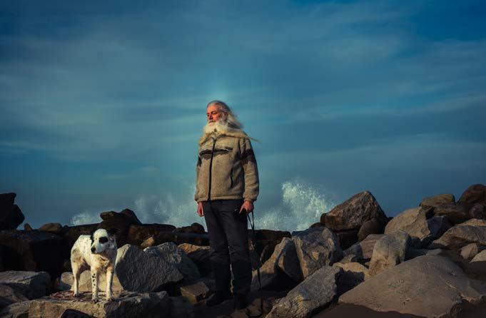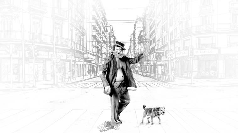 “En mayo de 2025, le llegó el turno a Diógenes y el Linyera, una dupla que dejó huella en la historieta nacional gracias al genio de Fontanarrosa. El Linyera, de pocas posesiones pero mirada afilada, comparte sus reflexiones con Mendieta, su perro confidente—y el nuestro también. La sesión se realizó en casa, en un rincón que se transformó en escenario. Diógenes cobró vida gracias a Nahuel Prado, actor y comediante. Cuando le propuse el personaje, no dudó ni un segundo. Lo esperaba como quien aguarda una cita con un viejo amigo.