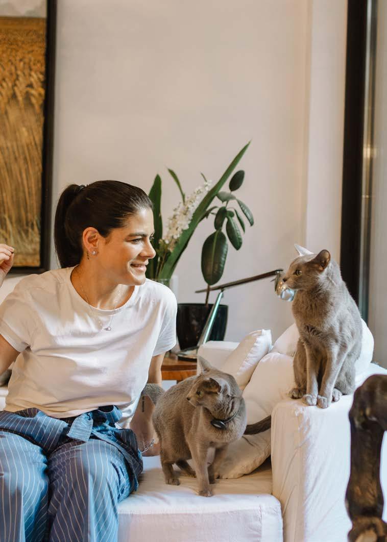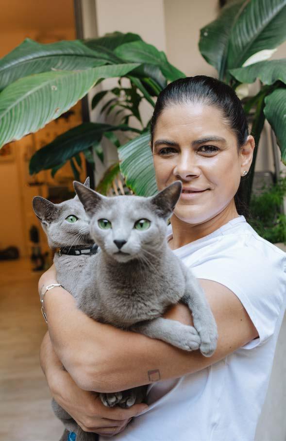 El más viejito es Benito. En el 2014 los adopté a él y a su hermanito, Logan, que lamentablemente en 2022 falleció por un problema renal. A Nicole la encontré en la esquina de mi casa. Me empezó a maullar, la dejé entrar y no se fue nunca más. A Cali, mi perro, lo encontró mi prima en el 2018 corriendo en la colectora de General Paz. Tratamos de encontrarle la familia, pero nadie lo estaba buscando. Y me cambió la vida.
