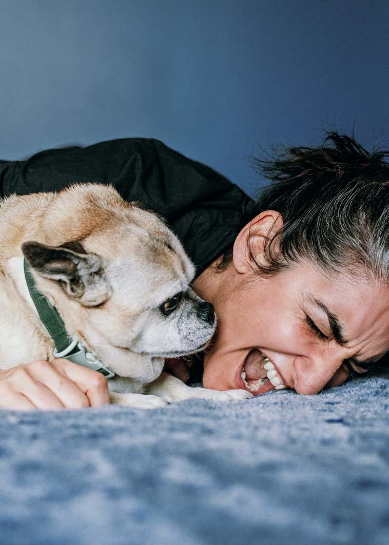 De Manuel lo que me parece maravilloso es que sabe e interpreta las cosas muy bien dentro de la casa. Él sabe dónde está su comida, dónde están sus cosas, comparte mucho. Pide todo el tiempo comida. Otra cosa que aprendí de él es a tomarme todo con calma. Por ejemplo, se levanta y se estira, y yo lo miro y digo: “Ay, tal cual”. Hay que aprender a hacer una pausa y estirarse. Él tiene una cosa de placidez que me encanta. Otra cosa muy linda que tiene es su mirada, hay algo en cómo me busca la mirada que me genera sensaciones de “qué te pasa a vos, cómo estás?” muy genuinas. La mirada del amor es lo más fuerte: te busca porque te quiere, te cuida. Con los perros hay una conexión tan fuerte que, cuando se van, sentís mucho vacío. Con Alicia me pasó eso y fue muy triste. Cuando volvía a casa sentía tanto vacío que no quería estar ahí.