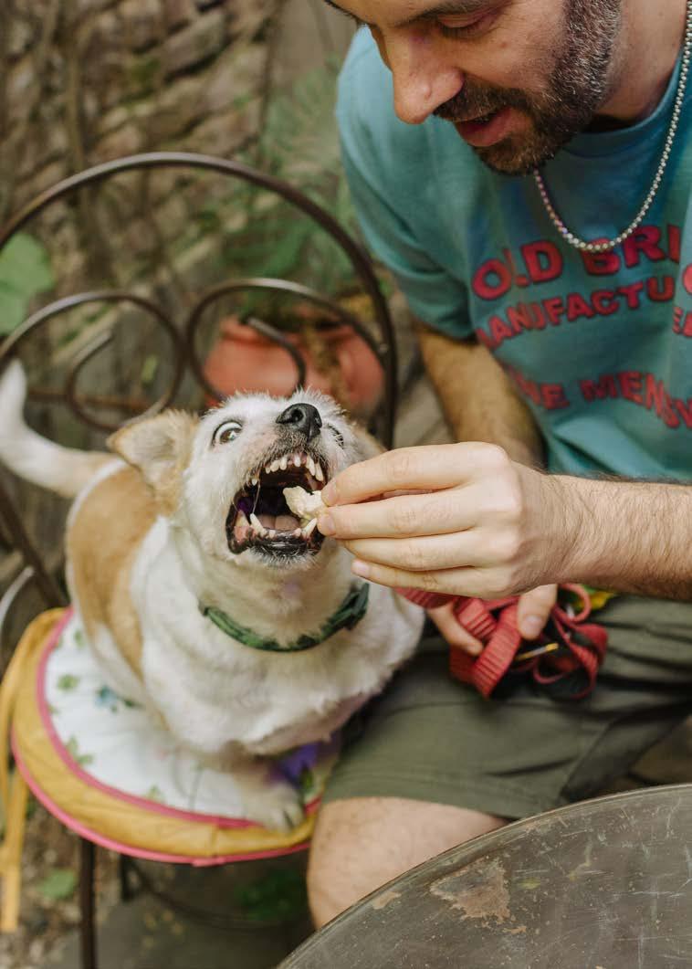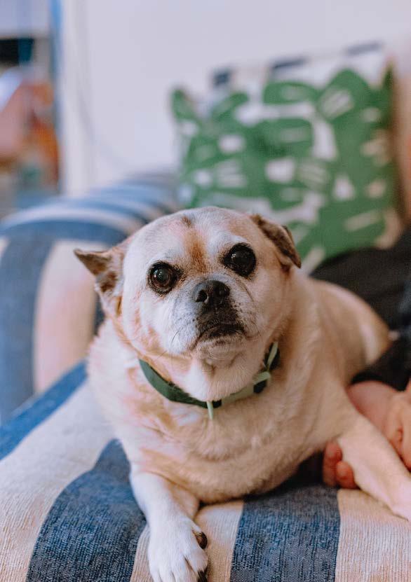“Nos conocimos gracias a una amiga en común. Su papá lo había encontrado una noche de lluvia, en la ruta de Roldán. Casi lo choca con el auto. Lo levantó, lo llevó a su casa y después se lo dio a la hija. Ella no sabía si quedárselo o no, y yo estaba ahí, en esa mesa de dudas. Se crió con un chihuahua y un pinscher, y desde entonces está convencido de que es uno más del grupo de los chicos. Hasta el día de hoy, diez años después, sigue creyendo que es chiquito.