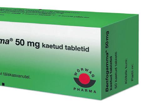 Ainuke Eestis retseptivabalt mĂŒĂŒdav benfotiamiini sisaldav ravim on Benfogamma 50 mg, millel on laialdane positiivne kasutuskogemus Benfogamma 50 mg sisaldab 50 mg benfotiamiini PĂ€evas vĂ”etakse sĂ”ltuvalt tiamiinipuuduse nĂ€htude raskusest 1...3 kaetud tabletti Toime saamiseks tuleb benfotiamiini vĂ”tta pidevalt pikema aja jooksul (vĂ€hemalt 2 kuud)