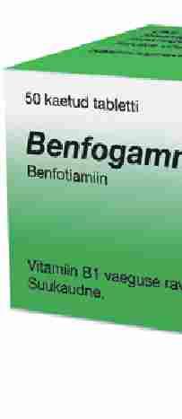Ainuke Eestis retseptivabalt müüdav benfotiamiini sisaldav ravim on Benfogamma 50 mg, millel on laialdane positiivne kasutuskogemus Benfogamma 50 mg sisaldab 50 mg benfotiamiini Päevas võetakse sõltuvalt tiamiinipuuduse nähtude raskusest 1...3 kaetud tabletti Toime saamiseks tuleb benfotiamiini võtta pidevalt pikema aja jooksul (vähemalt 2 kuud)