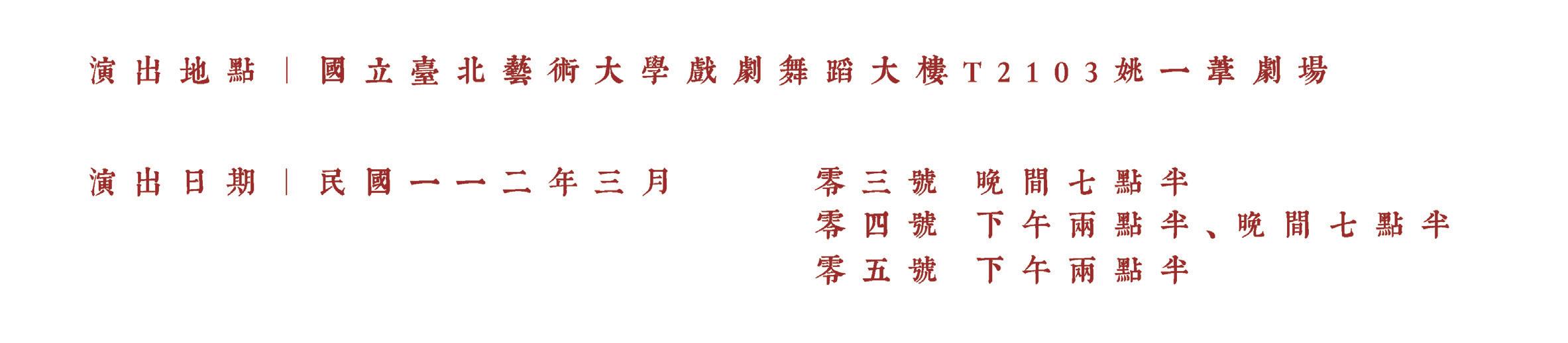 2022 國立臺北藝術大學戲劇學 院 秋季公演《千秋場》演員/飾演員