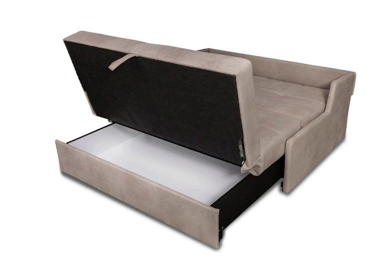 SMART SOFA WITH THIN ARMEST, BED FUNCTION FOR 2 PEOPLE & STORAGE IN TAUPE TEXTILE 146 x 110 x 94 (BED 135 x190)