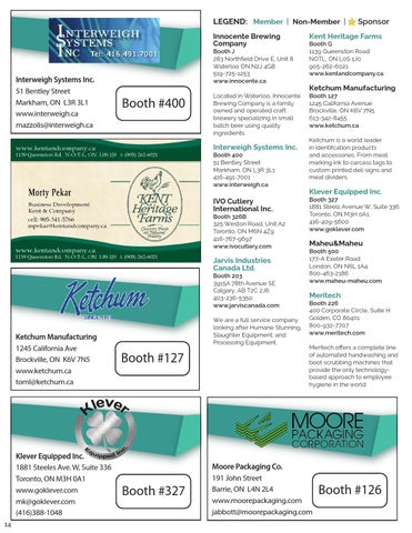 Ketchum Manufacturing Booth 127 1245 California Avenue Brockville, ON K6V 7N5 613-342-8455 www.ketchum.ca Ketchum is a world leader in identifcation products and accessories. From meat marking ink to carcass tags to custom printed deli signs and meat dividers.