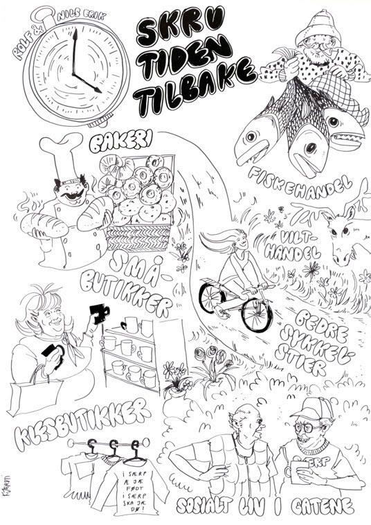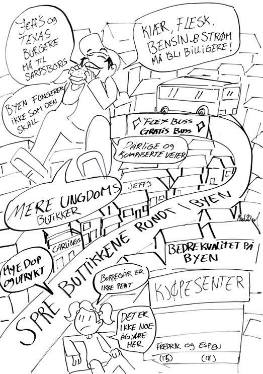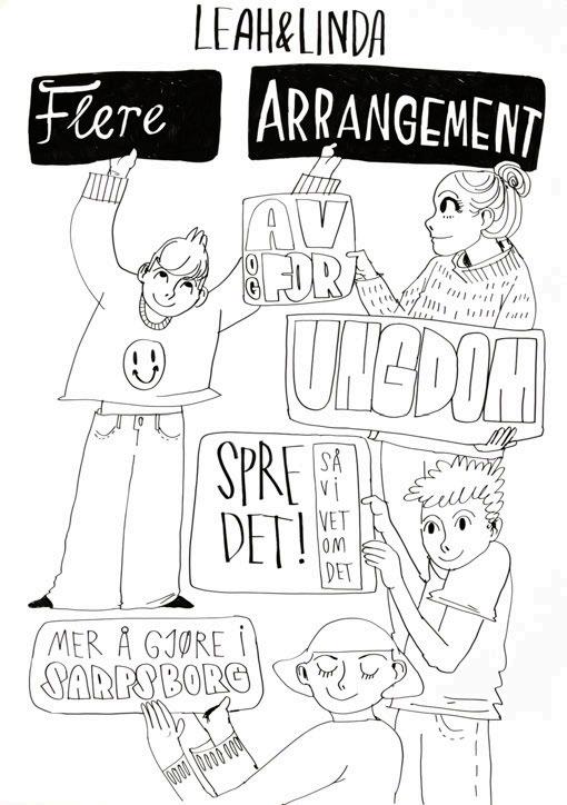 illustratører – og boken du holder i hånden er et resultat av deres arbeid. Det er med stor glede vi presenterer tegningene (side 31–109) som viser folk i Sarpsborgs svar på spørsmålene: