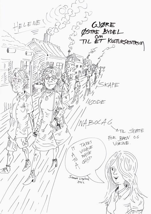 Illustrasjonene i denne fargeleggingsboken er en visualisering av innbyggernes stemmer i bilder og ord. Jeg håper at de, i all sin beskjedenhet, kan bidra til engasjerende samtaler og kreative tiltak. I beste fall håper jeg at de vil inspirere innbyggerne til å slippe kreativiteten løs, og at de vil engasjere seg i lokalsamfunnets utvikling i demokratiets ånd!