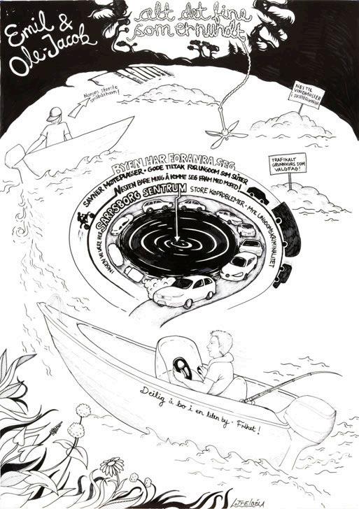 I denne boka kan du lese refleksjoner om nettopp dette og bla deg gjennom en stor bredde av dine medborgeres tanker – tolket og ført i pennen av superbe illustratører. Kanskje det inspirerer deg til selv å delta, eller gjør at du tenker helt nytt om hva Sarpsborg kan bli? Bla videre, og finn det ut!