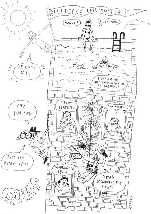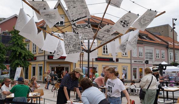 til eksperimentering er så grunnleggende og sterk. Denne medvirkningsprosessen gir en lekende inngang til et felt som sårt trenger å endre seg. Den åpne og spørrende formen, og den store toleransen for å tenke fritt, er et resultat av at en for mange fremmed profesjon – kunstnerne – og deres måte å tenke på har fått en rolle. Når et samfunn klarer å bruke kunst og kunstnere i byutviklingen så kommer det noe annet ut enn det man ville fått om andre profesjoner var inne. Dette «noe annet» trenger vi mer enn noensinne. kommer det noe annet ut enn det man ville fått om andre profesjoner var inne. Dette “noe annet” trenger vi mer enn noensinne.