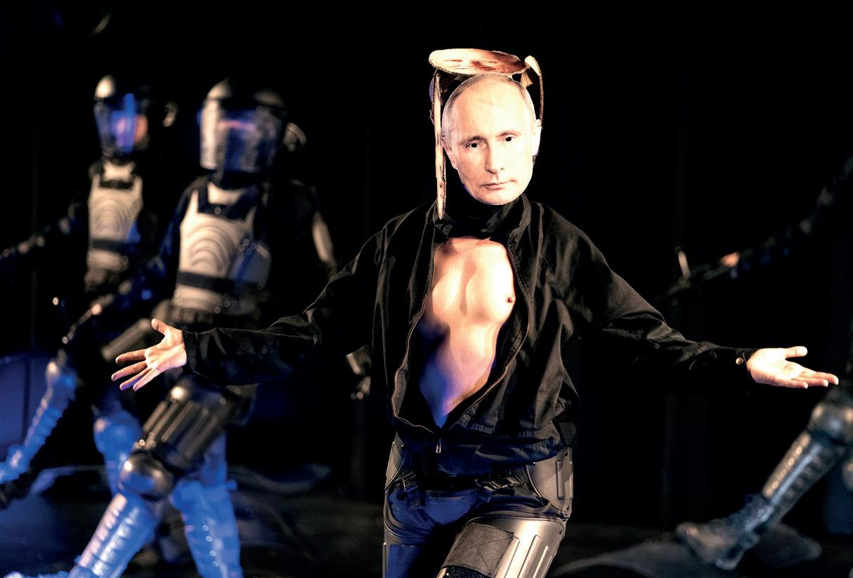 og forestillingen bruker opprørsuniformer som et sentralt visuelt og symbolsk materiale.