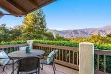lifelong residents. Magnolia Cottage - Remodeled three bedroom, three bathroom with large backyard, RV parking, fruit trees, enclosed carport, outdoor living areas, and mountain views close to bike trail, schools, shopping, restaurants. $825,000 Enjoy resort-style living at this luxurious, private, 10-acre estate in Upper Ojai boasting gated entries, seven-bedroom main house with two guest wings and three fireplaces, pool house, swimming pool with beach entrance and wading pool, spa, gym, artist’s loft, lighted tennis court, horse facilities, outdoor kitchen with pizza oven, patio fireplace, family orchard, three-car garage + two-car garage, and spectacular mountain views. $5,595,000 RocaVistaRanchOjai.com
