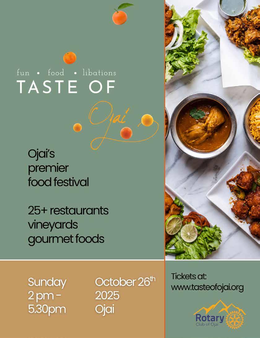 More than 25 local restaurants, breweries and wineries participate in Ojai’s premier food event to raise funds for the Rotary Club of Ojai’s projects and programs.