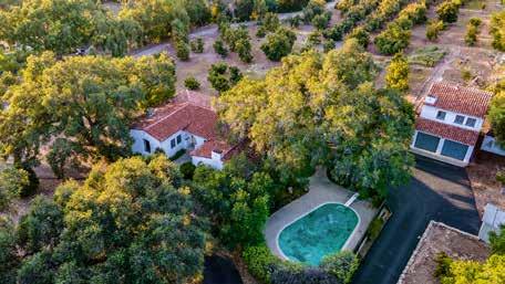 Discover a quiet East End compound offering nearly 5,000 square feet across three private homes. Originally crafted by Mr. Shippee for his family, the main house welcomes you with a walled courtyard, covered veranda, sparkling pool, and lush landscaping. Inside, acacia wood floors, an open cook’s kitchen, and a dramatic double-sided fireplace anchor the living spaces. Three bedrooms with French doors open to the gardens. A 1,400-square-foot guest house adds two bedrooms, a bath, a private courtyard, and a two-car garage — ideal for visitors or extended family. The third home features modern concrete floors, a spacious living room, kitchenette, bedroom, bath, and two secluded patios. The landscaped grounds mix drought-tolerant plantings with fruit trees — apple, citrus, fig, pomegranate — and olive trees lining the drive. A fenced paddock and turnout area make the property horse-friendly. Altogether, this rare compound blends versa-