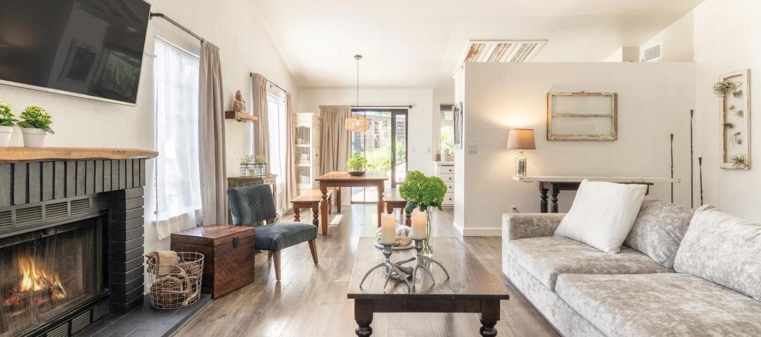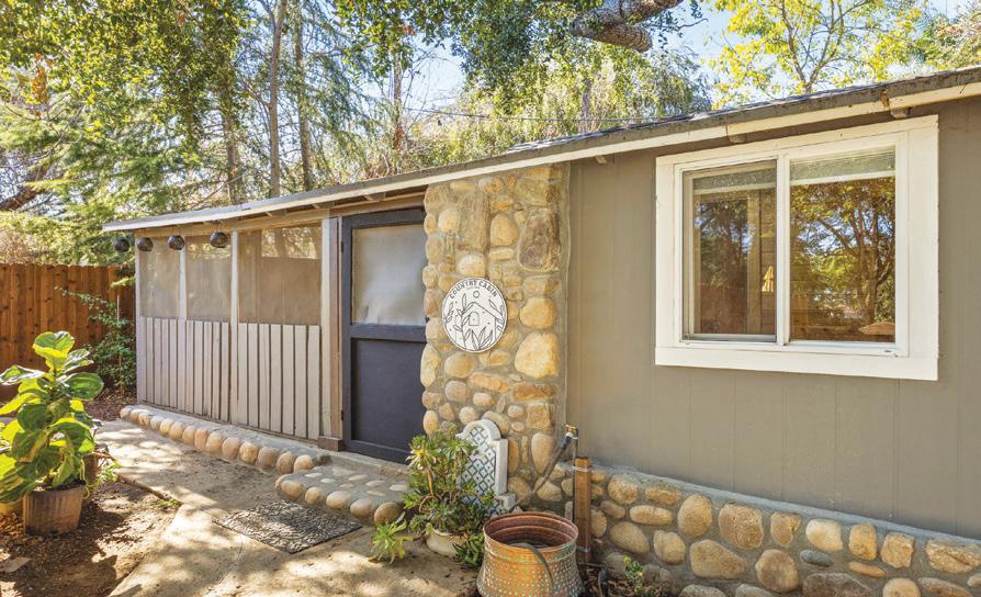 This Mid-Century Modern sits at the end of a quiet cul de sac in the vibrant Ojai village. Walk or ride your bike everywhere from your comfortable 1807 sq. ft. 3BR/2BA home with huge great room w/ fireplace. The spacious primary suite features its own mod fireplace to set a romantic mood. You’ll love the light pouring in the skylights at the top of high vaulted ceilings, the generous use of wood throughout the house, the efficient galley kitchen and the large windows that wrap around the dining area. There’s even a yoga room/art studio! Stunning mountain views invite you to your fenced backyard with garden beds. And the pergola offers just the right amount of shade for your barbecue parties. Considerable work has been done on this home recently to bring it back to the true midcentury vibe.