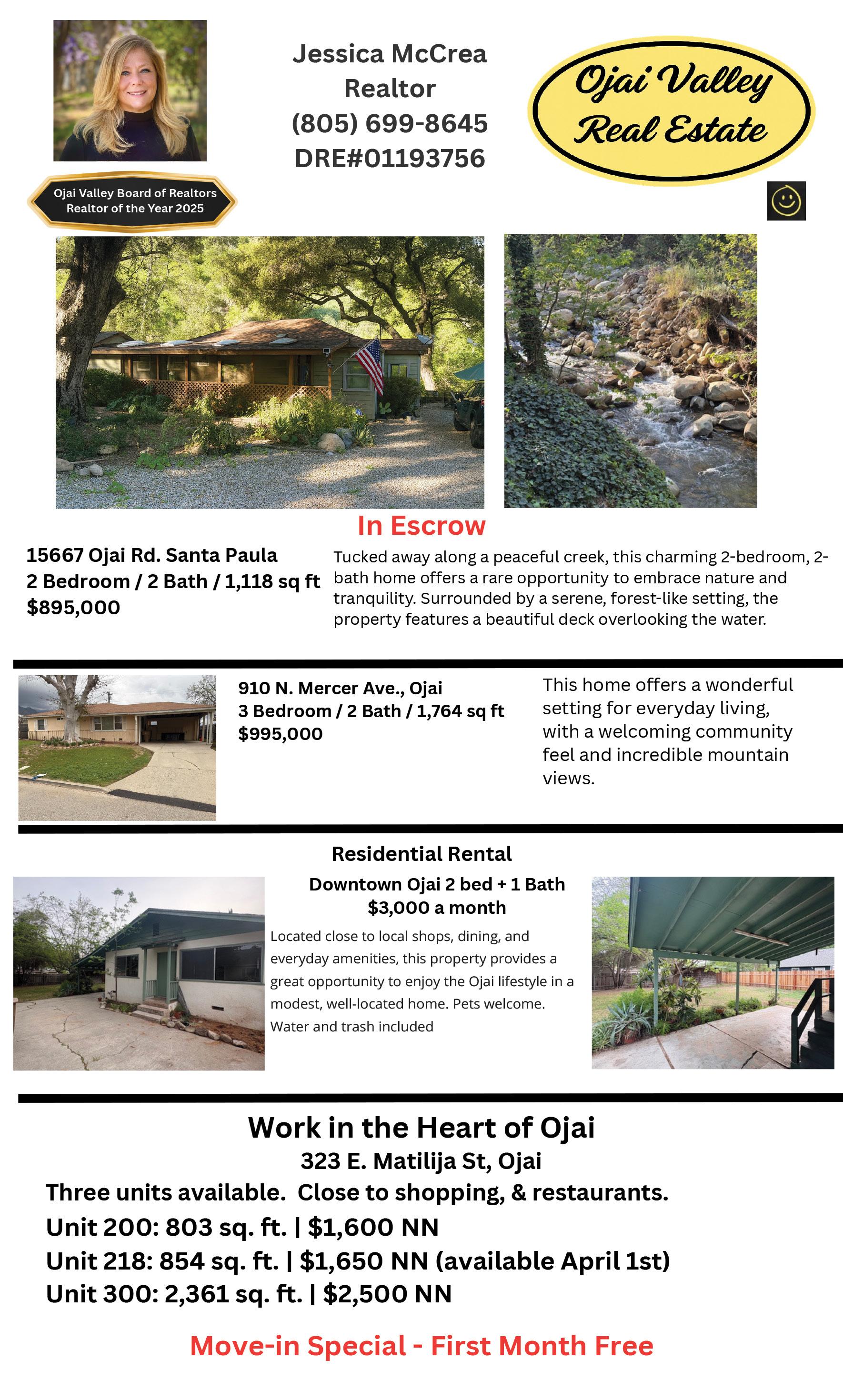 525 S. VENTURA STREET Ojai living just moments from downtown. Impeccable 3 bed, 2 bath on a 14,461 sqft lot with vaulted ceilings, open living, gourmet kitchen, and indoor-outdoor spaces with patios, gardens, and water feature. Sought-after Creek Road setting. $1,350,000