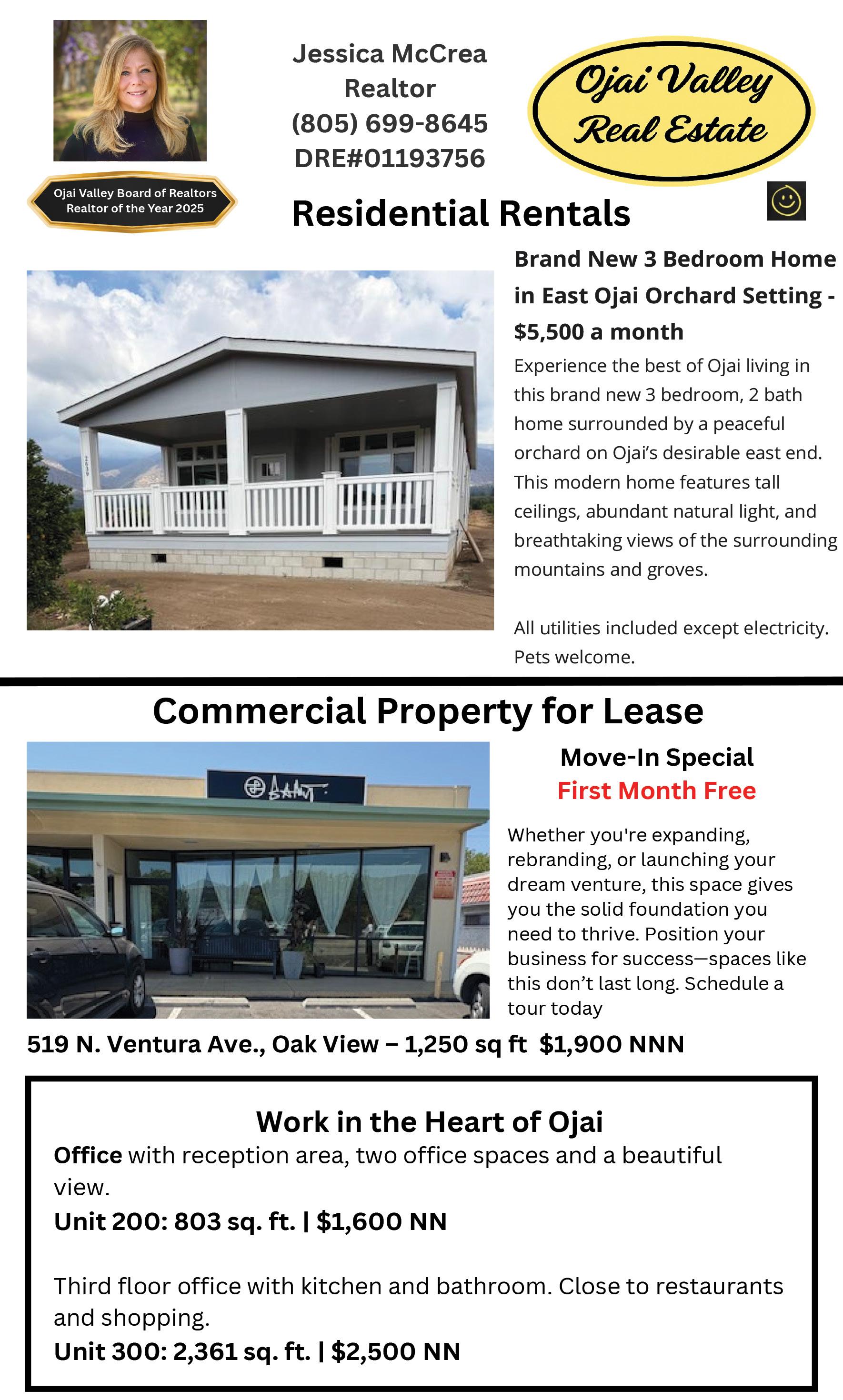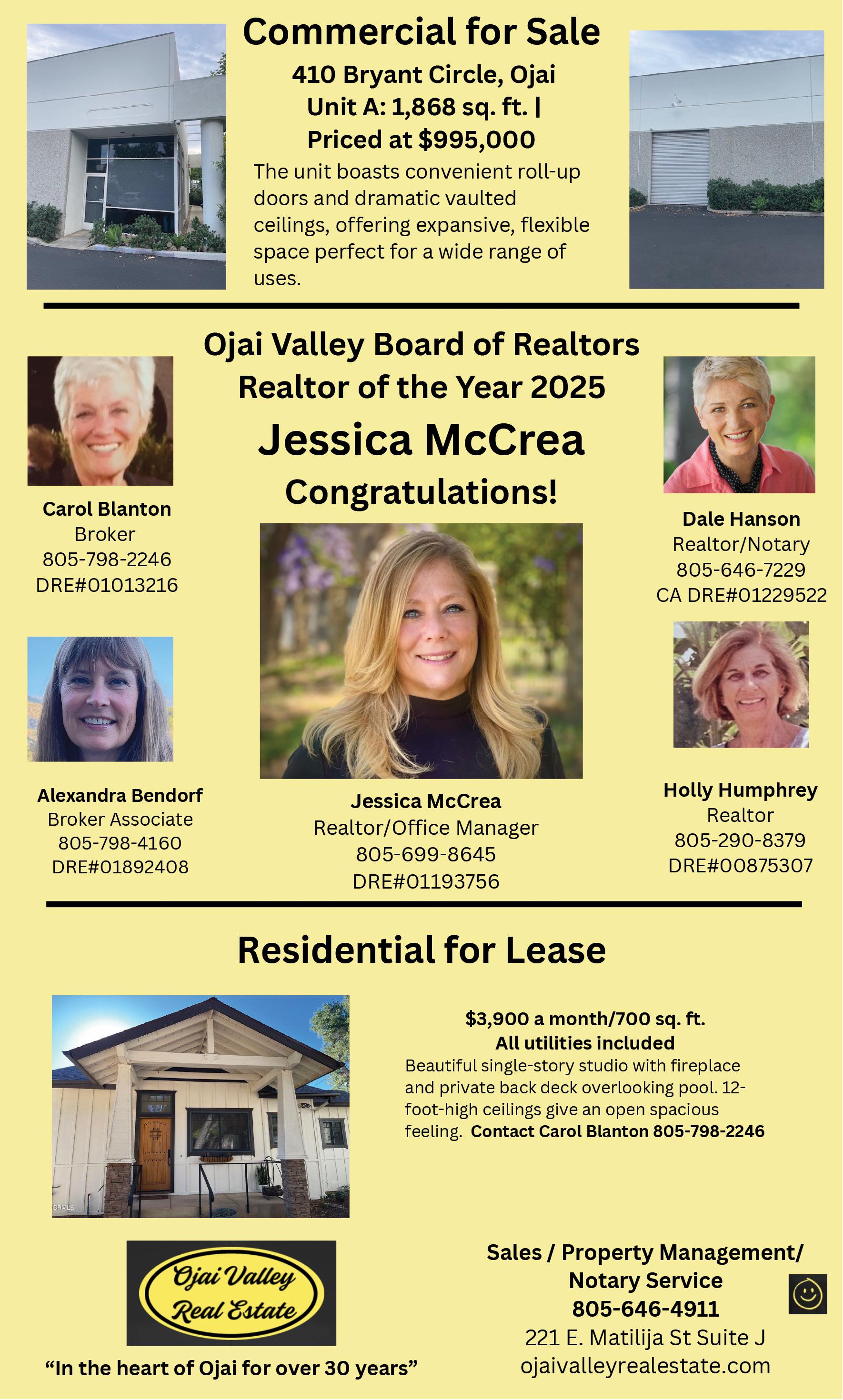 Discover a rare opportunity to own a signature commercial property in the heart of Downtown Ojai. This iconic property blends architectural elegance with exceptional visibility on Ojai’s most traveled street, with over half an acre of land and a thoughtfully designed structure that features high ceilings, a loft office, and custom container spaces.