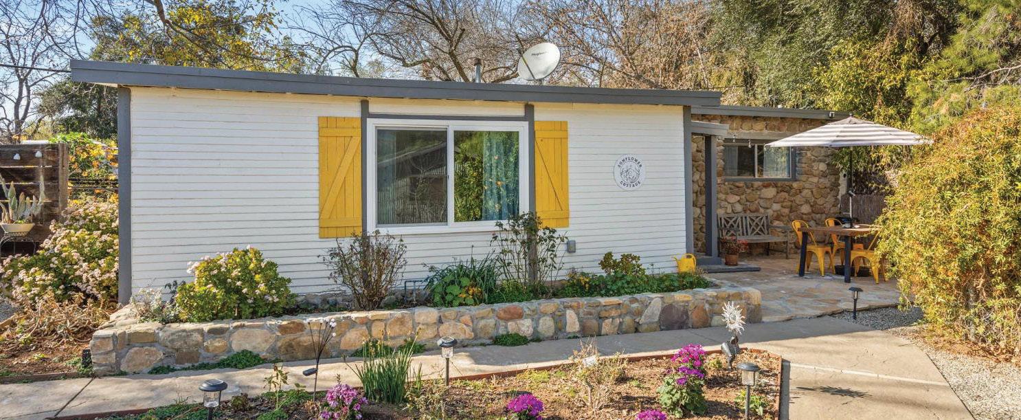 Whether you’re looking for an Ojai getaway to enjoy or a terrific real estate investment without restrictions on short term rentals, this is your ideal buy. More than just a home, this lovingly remodeled property comprises a 3BR/2BA, 1,476 sq. ft. farmhouse, 2BR/1BA, 816 sq. ft. Sunflower Cottage, 2BR/1BA, 726 sq. ft. Country Cabin and a party barn just for fun. All sitting pretty on 0.52 acres with stunning Topa Topa views! You’ll love the rustic touches like beamed ceilings, wood floors, barn doors, and eat-in kitchens. All newer appliances, laundry rooms, skylights, newer windows and doors, and natural gas fireplace. Two newer hot tubs bubble softly under the stars, and each home has covered outdoor dining. You could live in the Farmhouse and lease out the two cottages, or lease all of them out when you’re not there and invite your family and friends to join you when you want to visit. Or keep all three units generating income every day of the year. You won’t find a more flexible real estate investment. The compound is conveniently located at the summit between Ojai and Santa Paula, making the drive from LA easier and trips into Ojai village a breeze. Offered at $2,100,000